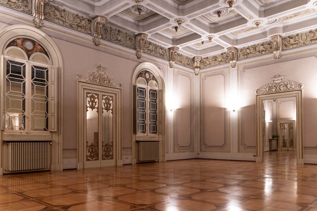 Elegante ed esclusiva, la location accoglie l’ospite con un fascino senza tempo, già dal primo scorcio del cortile interno che si apre sui suggestivi portici di San Pietro, lungo l’antica Via Emilia. Situato al primo piano del prestigioso palazzo quattrocentesco, lo spazio nasce con l’idea di offrire una cornice unica e raffinata per eventi di prestigio, sia aziendali che privati, dove eleganza, storia e personalità si fondono in un’atmosfera indimenticabile.